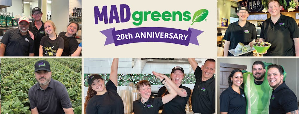 As we reflect on two decades since opening our doors in December 2004, we want to extend our heartfelt thanks to you for being part of the MAD fam. Whether you’ve been eating salads with us since ’04 or just discovered us last week, we’re raising a romaine leaf in your honor.